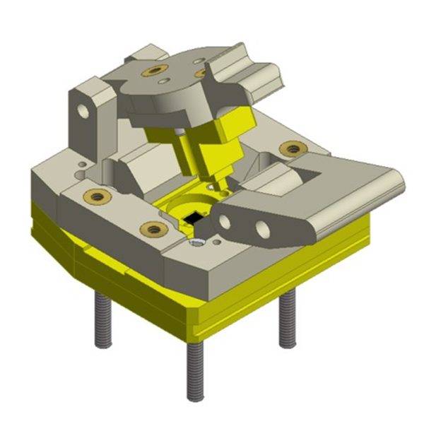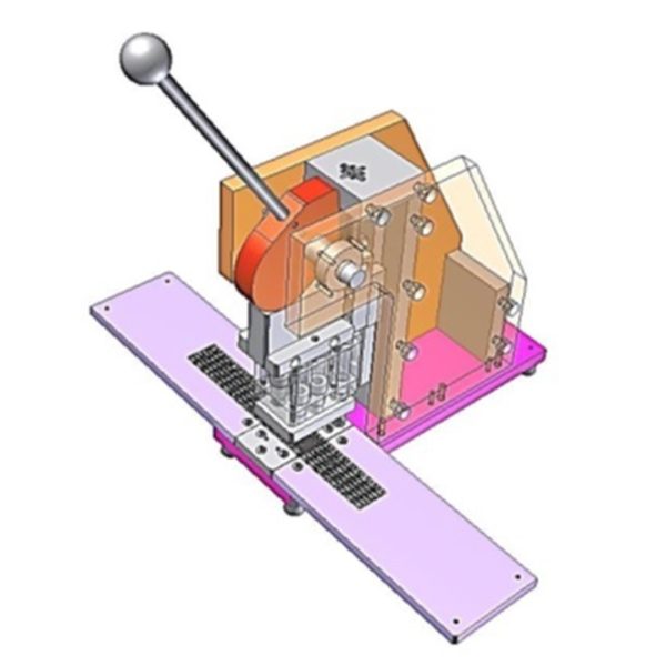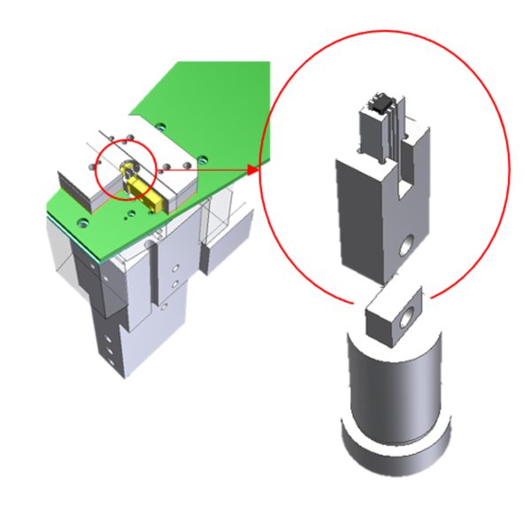 Ceramic hard stop for test kit with cam plunging mechanism for discreet package alignment